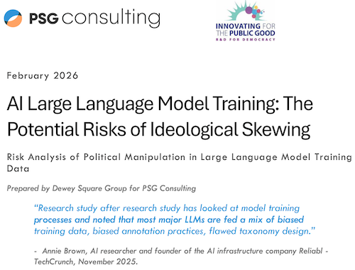According to a new report commissioned by PSG Consulting, AI Large Language Model Training: The Potential Risks of Ideological Skewing, these LLMs are disproportionately trained on biased, low-fact and right-leaning sources.