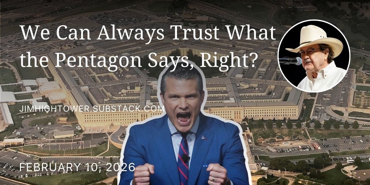 Welcome to our new subscribers who found out about Pressing Issues from our old friend Jim Hightower. And if you’re not already reading his newsletter, you should be!